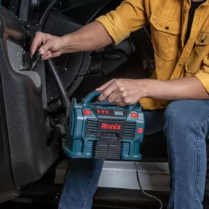 شرح جزئیات مینیکمپرسور شارژی 8605 رونیکس، ابزار چندکارهای است که از آن برای بادکردن تایر خودرو، دوچرخه، تیوب و نیز