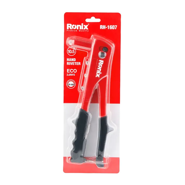 انبر پرچ RH-1607 رونیکس یکی از ابزارهای دستی این برند برای انجام پرچکاری است و از بدنهای محکم از جنس فولاد A3 برخوردار است. پرچکاری، ساخت ناودان، مبلمان و … همگی مواردی هستند که میتوانید برای انجام آنها از این محصول استفاده کنید. پرچهای 2.4، 3.2، 4.0 و 4.8 میلیمتری با این محصول قابل پرچکاری هستند.