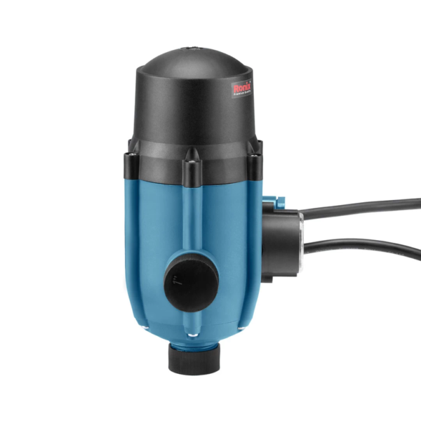 ست کنترل پمپ آب رونیکس از بدنه‌ای مقاوم و بادوام از جنس پلیمر ساخته شده و مناسب تمامی سیستم‌های آب خانگی است. این دستگاه با توان 1,1 کیلووات و قابلیت تنظیم فشار، برای کنترل فشار سیستم‌های آب رسانی بسیار مناسب است.